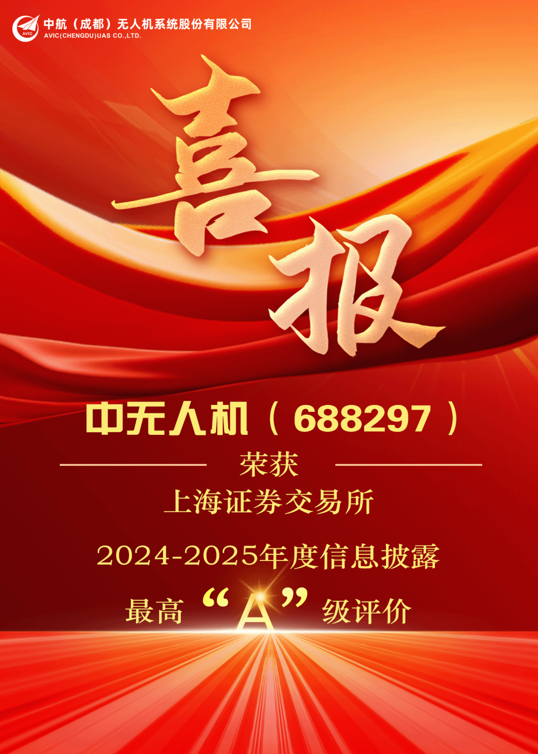 近日,上海证券交易所发布《关于2024-2025年度信息披露工作评价结果的通报》。中无人机(证券代码:688297)荣获2024-2025年度信息披露工作评价最高评级——A级(优秀)。标志着公司在治理、信息披露质量和投资者关系管理方面获得了监管机构和资本市场的高度认可。